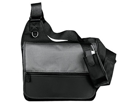 Porta Tablet Media Messenger Zoom. De poliéster con bolsillo frontal, panel organizador y correa ajustable. Área de impresión: 12 X 10 cm.